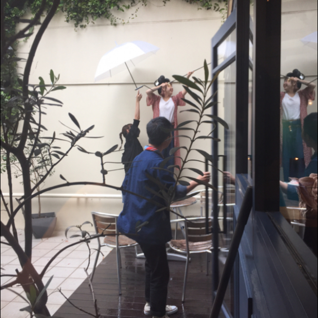 清水さんが傘をさっと取り出して